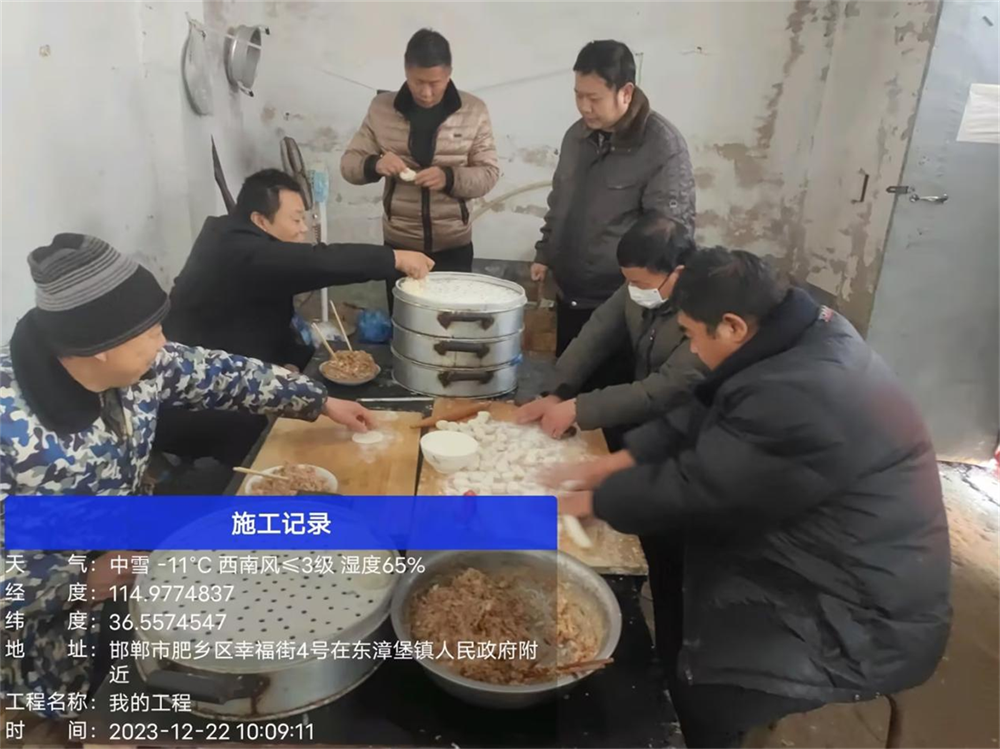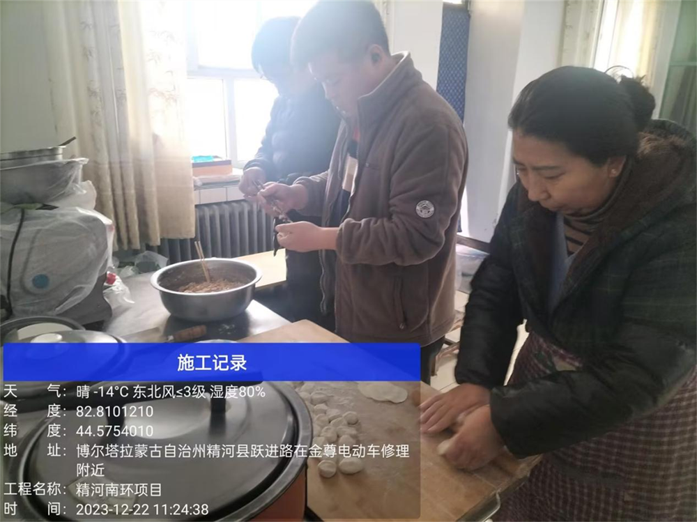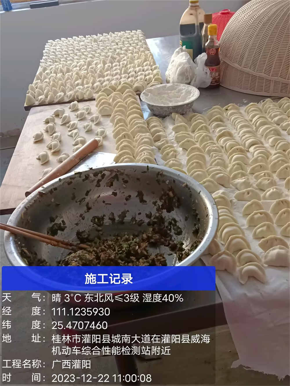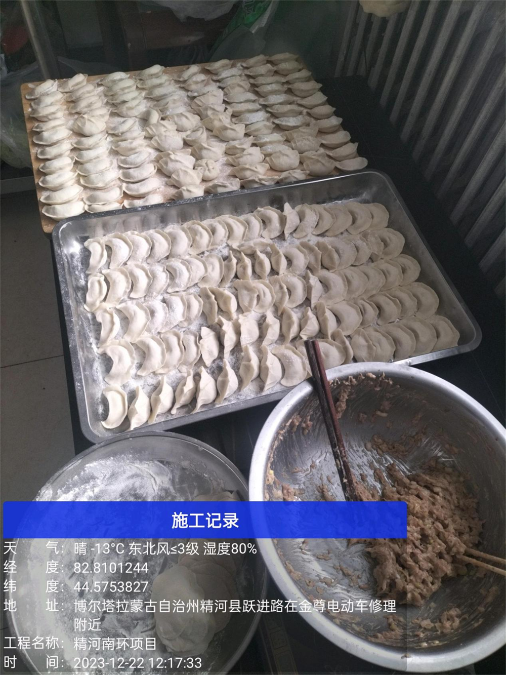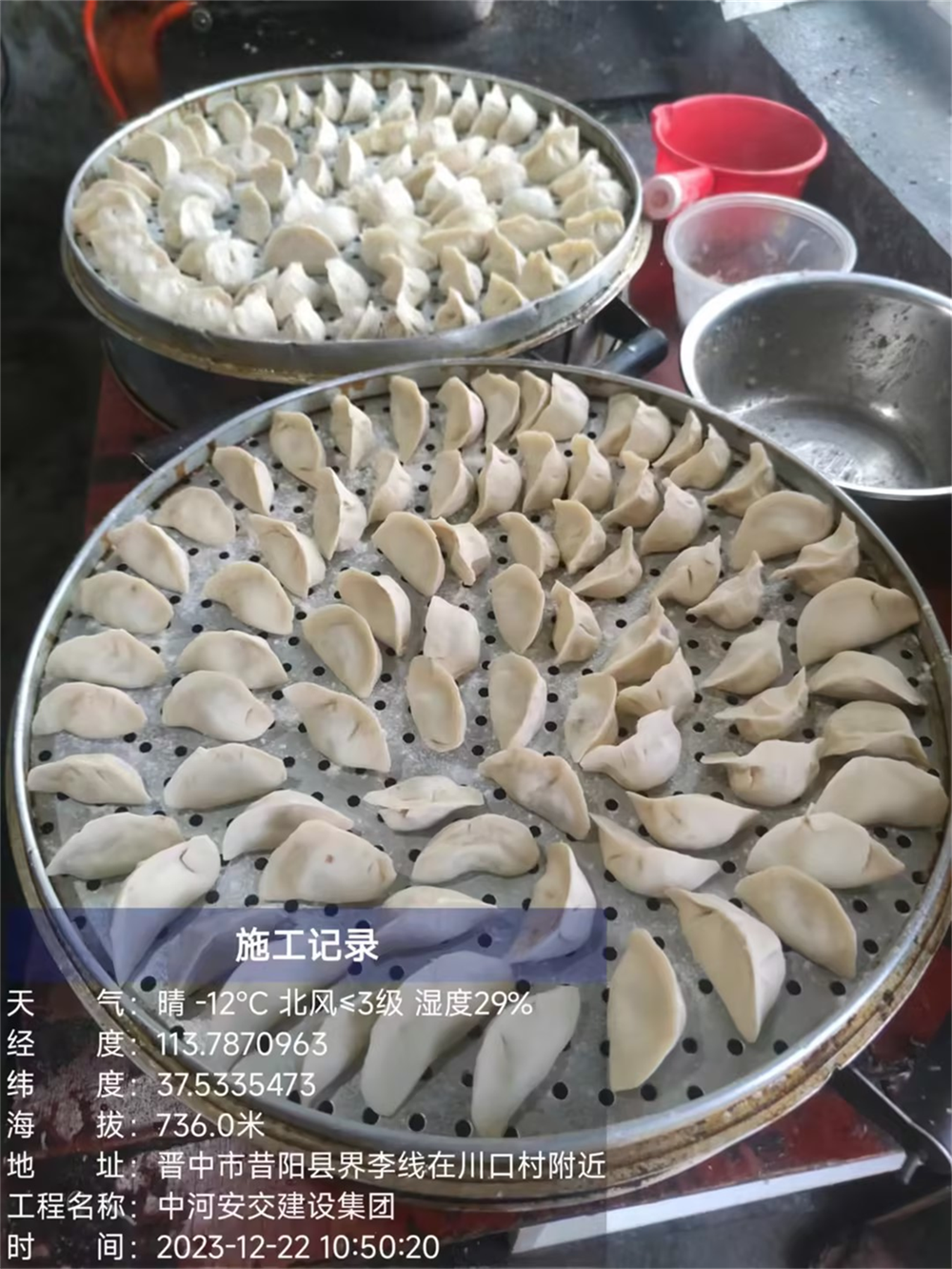 今日有施工作業的灌平路面1標項目,在保質保量的工作完成下,也吃上了熱氣騰騰的餃子。