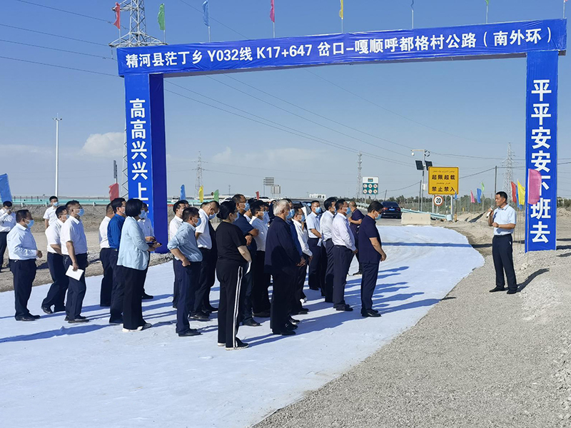 為加快精河縣“一帶一路”經(jīng)濟(jì)帶動(dòng),強(qiáng)力推進(jìn)“縣內(nèi)環(huán)起來(lái)、進(jìn)出快起來(lái)、南北環(huán)路暢起來(lái)、出入精河聯(lián)起來(lái)”的綜合立體交通網(wǎng)建設(shè),近日,博州巴音克西州長(zhǎng)在當(dāng)?shù)馗骺h市和地州有關(guān)部門(mén)負(fù)責(zé)人的陪同下,視察了我公司精河縣茫丁鄉(xiāng)Y032線K17+647岔口-嘎順呼都格村公路建設(shè)項(xiàng)目的生產(chǎn)建設(shè)工作。